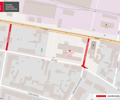 W środę, 5 maja od godzin porannych planowane jest zamknięcie skrzyżowania ul. Góreckiego i ul. Na Zaspę. Jednocześnie otwarte zostanie skrzyżowanie ul. Wilków Morskich z ul. Na Zaspę. Taka organizacja ruchu utrzyma się co najmniej do 18 maja.