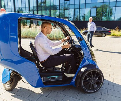 - Rowery elektryczne Hopper nie różnią się rozmiarem od klasycznego roweru cargo i posiadają homologację na drogi rowerowe. Dzięki pełnemu zawieszeniu, użytkownicy cieszą się maksymalnym komfortem. Cztery rowery elektryczne Hopper mieszczą się na jednym miejscu postojowym dla samochodu – podkreśla Anna Klinkosz, koordynatorka gdańskiej odsłony projektu z Referatu Mobilności Aktywnej. - Innowacją jest tylne koło skrętne, co daje zupełnie nowe wrażenia z jazdy. Rower wyposażony jest w fotel, który można wyregulować, a z tyłu znajduje się kanapa dla drugiego pasażera. Do dyspozycji mamy kierownicę, oświetlenie, kierunkowskazy, lusterka, ogrzewanie przedniej szyby oraz wycieraczkę. Pojazd jest zabudowany, ale nie ma drzwi – dodaje Anna Klinkosz.