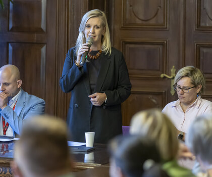 Paulina Matuszewska-Gruszka p.o. dyrektora Wydziału Mieszkalnictwa zaprezentowała z kolei możliwości wsparcia mieszkaniowego, które dostępne w ramach Gdańskiego Programu Mieszkalnictwa Społecznego.