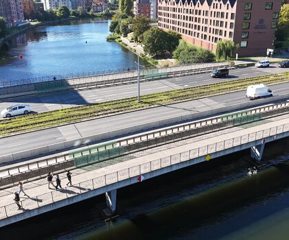 Równolegle, do końca 2027 roku, prowadzona będzie przebudowa mostu nad Starą Motławą. Prace będą realizowane przy zachowaniu ciągłości ruchu. Zakres robót obejmie przebudowę konstrukcji mostu, układu drogowego i oświetlenia. Modernizacji zostaną poddane również sieci podziemne, m.in. kanalizacja deszczowa, sieci wodociągowe, kanał technologiczny oraz pętle indukcyjne.