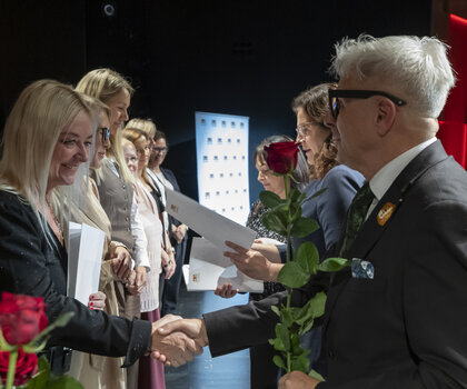 Dyplomy i kwiaty wręczyły Aleksandra Dulkiewicz, prezydent Gdańska oraz Monika Chabior, zastępczyni prezydent Gdańska ds. rozwoju społecznego i równego traktowania, a także radni miasta Gdańska: Andrzej Kowalczys, przewodniczący Komisji Edukacji w RMG, Barbara Imianowska, Piotr Dzik i Piotr Gierszewski. Na wydarzeniu pracownikom oświaty gratulowały także Halina Mężyk, wiceprzewodnicząca Związku Nauczycielstwa Polskiego oraz Iwona Puchalska z NSZZ „Solidarność”.