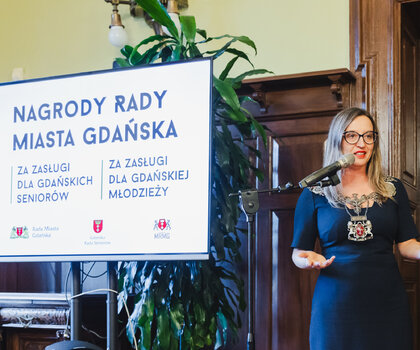 - Dzisiejsza uroczystość jest okazją do wyrażenia wdzięczności i uhonorowania osób, które wnoszą wyjątkowy wkład w życie gdańskiej społeczności – zarówno wśród seniorów, jak i młodzieży. Nagrody za zasługi na rzecz tych dwóch grup społecznych przyznawane są wspólnie przez trzy działające w Gdańsku rady. Chcemy w ten sposób podziękować wyróżnionym osobom i podkreślić ich ogromne zaangażowanie oraz serce, które wkładają w codzienną działalność na rzecz innych - mówiła podczas uroczystości przewodnicząca Agnieszka Owczarczak. - To moment, by pokazać, jak wielu wartościowych, często działających społecznie gdańszczan poświęca swój czas, by aktywizować seniorów i młodych ludzi, inspirować ich oraz tworzyć przestrzeń do wspólnego działania.