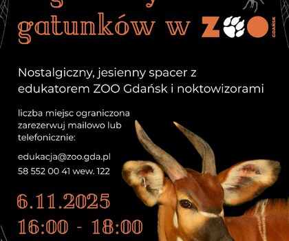 Listopad to miesiąc refleksji i zadumy. To również doskonały moment, aby zwrócić uwagę na gatunki zagrożone wyginięciem oraz te, które bezpowrotnie utraciliśmy. W czwartek, 6 listopada, w gdańskim ZOO odbędzie się wieczorny spacer edukacyjny poświęcony właśnie tym zwierzętom.