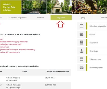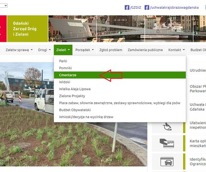 - przez stronę internetową Gdańskiego Zarządu Dróg i Zieleni (ścieżka: Zieleń → Cmentarze),