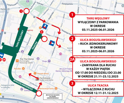 W poniedziałek, 3 listopada, rozpoczną się przygotowania do tegorocznego Jarmarku Bożonarodzeniowego w Gdańsku. Tego dnia ruszy montaż infrastruktury jarmarkowej. W związku z tym wprowadzone zostaną zmiany w organizacji ruchu na Targu Węglowym oraz ul. Bogusławskiego.