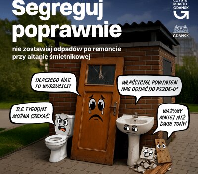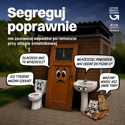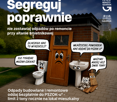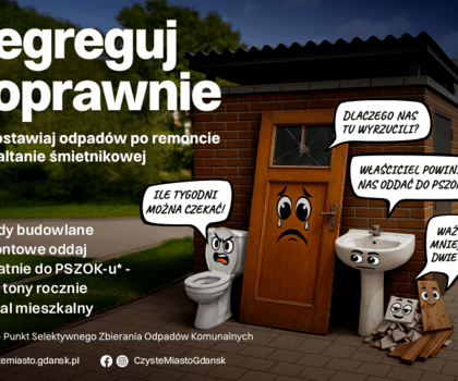 Remont to początek zmian - nowych wnętrz, większego komfortu i lepszego samopoczucia. To jednak także czas, w którym powstaje wiele odpadów: gruz, stare płytki, drzwi, okna czy ceramika sanitarna. Kampania „Segreguj poprawnie” przypomina mieszkańcom Gdańska, jak prawidłowo postępować z odpadami budowlanymi, by uniknąć problemów i chronić środowisko.