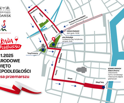 Formowanie parady rozpocznie się 11 listopada od godziny 9.00 na ulicy Podwale Staromiejskie, a jej start zaplanowano na godzinę 10.30. Uczestnicy parady przejdą okrężną drogą przez całe Stare i Główne Miasto aż pod Zieloną Bramę, gdzie zostanie odśpiewamy Hymn Narodowy oraz zrobione rodzinne zdjęcie. Zaplanowano także wspólne śpiewanie polskich pieśni i piosenek.