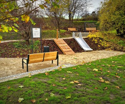 Choć park zajmuje niewielką powierzchnię, jego wyposażenie odpowiada na potrzeby różnych grup wiekowych. Dla dorosłych przygotowano strefę relaksu z ławkami, w tym jedną bujaną. Dzieci mogą korzystać ze zjeżdżalni oraz drewnianej ścianki wspinaczkowej z liną. Całość została zaprojektowana z myślą o funkcjonalności i estetyce.