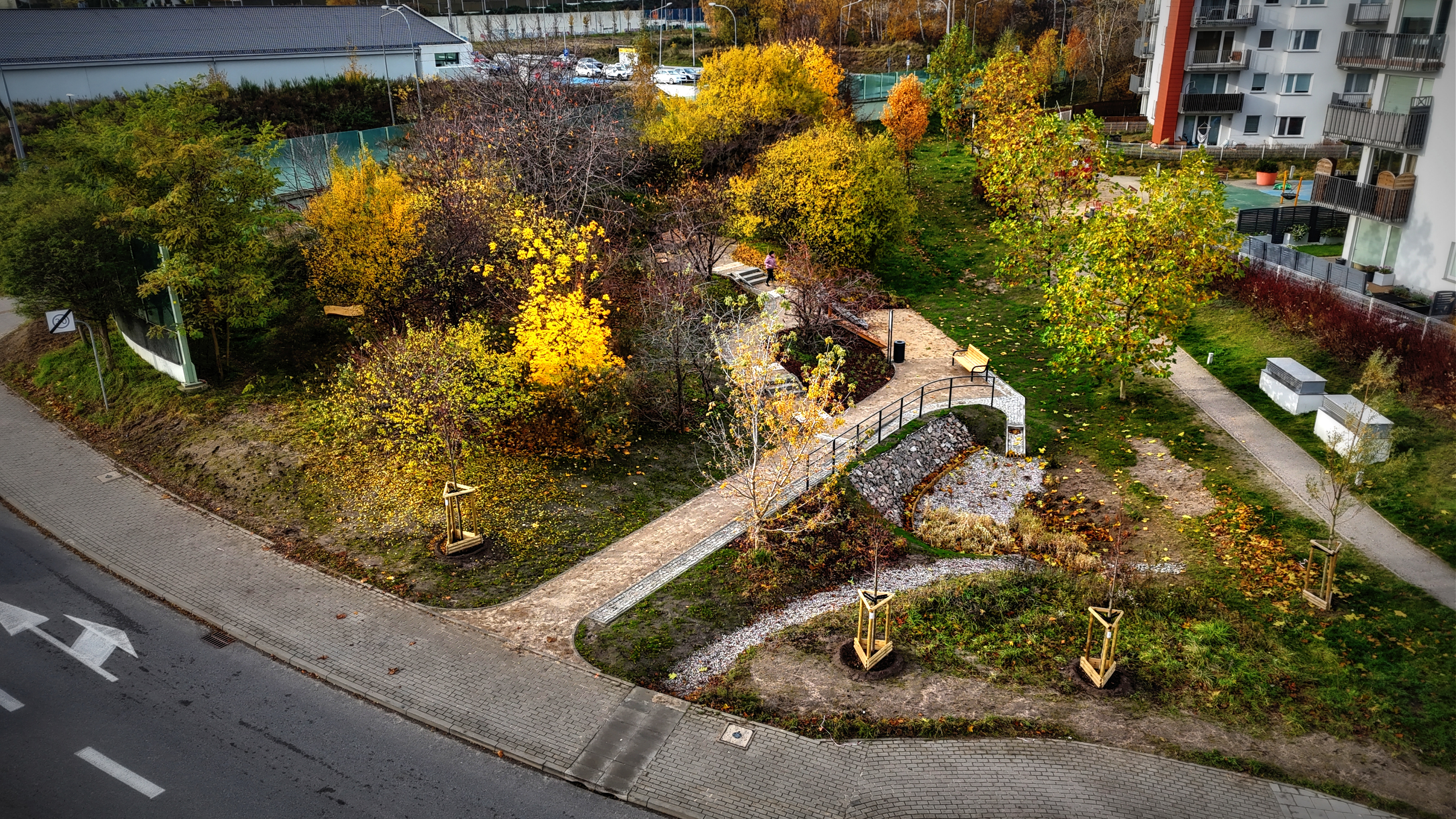 Na Jasieniu, pomiędzy ulicami Przytulną i Kartuską, zakończono realizację projektu Budżetu Obywatelskiego, którego efektem jest nowy park kieszonkowy. To niewielka, ale funkcjonalna przestrzeń, która będzie służyć jako miejsce odpoczynku, rekreacji oraz spotkań sąsiedzkich.