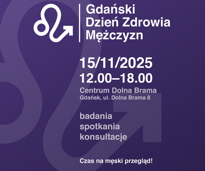 Zauważając potrzeby panów oraz chęć do korzystania z badań profilaktycznych, Miasto Gdańsk oraz Fundacja Gdańska zapraszają wszystkich mężczyzn na drugą edycję wydarzenia „Gdański Dzień Zdrowia Mężczyzn”. W tym roku wydarzenie odbędzie się w sobotę, 15 listopada w godz. 12.00–18.00 w Centrum Dolna Brama przy ul. Dolna Brama 8 w Gdańsku.