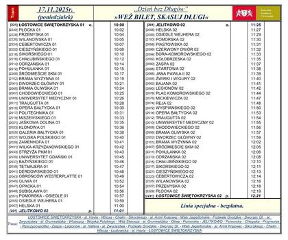 Jak co roku na tory wyjedzie specjalny, bezpłatny tramwaj. Będzie on kursował w poniedziałek, 17 listopada w godzinach 10.00-13.00. Ruszy z pętli Łostowice -Świętokrzyska do Jelitkowa, mijając po drodze m.in. Gdańsk Główny, Wrzeszcz, Strzyżę oraz Oliwę. W drodze powrotnej z Jelitkowa tramwaj przejedzie przez Zaspę i ponownie przez Gdańsk Główny, kończąc trasę na pętli Łostowice Świętokrzyska.