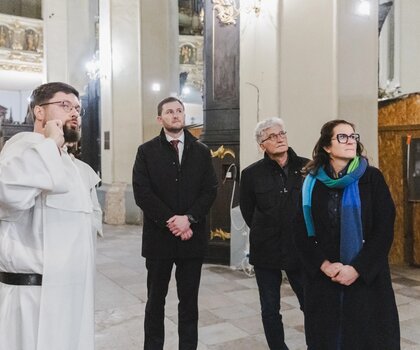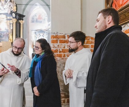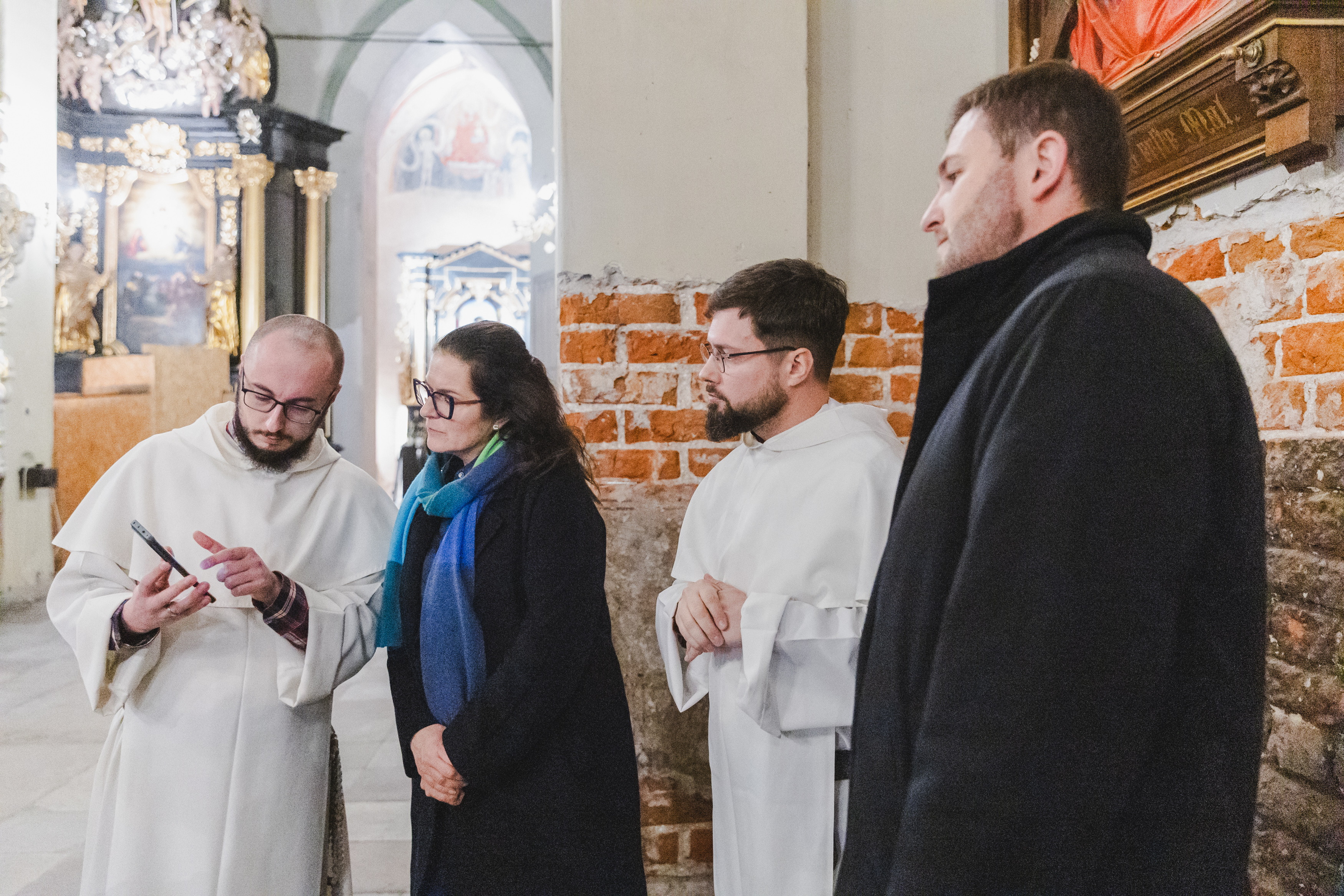 Prezydent Aleksandra Dulkiewicz i Piotr Grzelak, zastępca prezydenta ds. zrównoważonego rozwoju i gospodarki odwiedzili Bazylikę św. Mikołaja przed otwarciem nawy południowej. O remoncie i pracach konserwatorskich opowiadał Michał Osek, przeor gdańskich dominikanów.