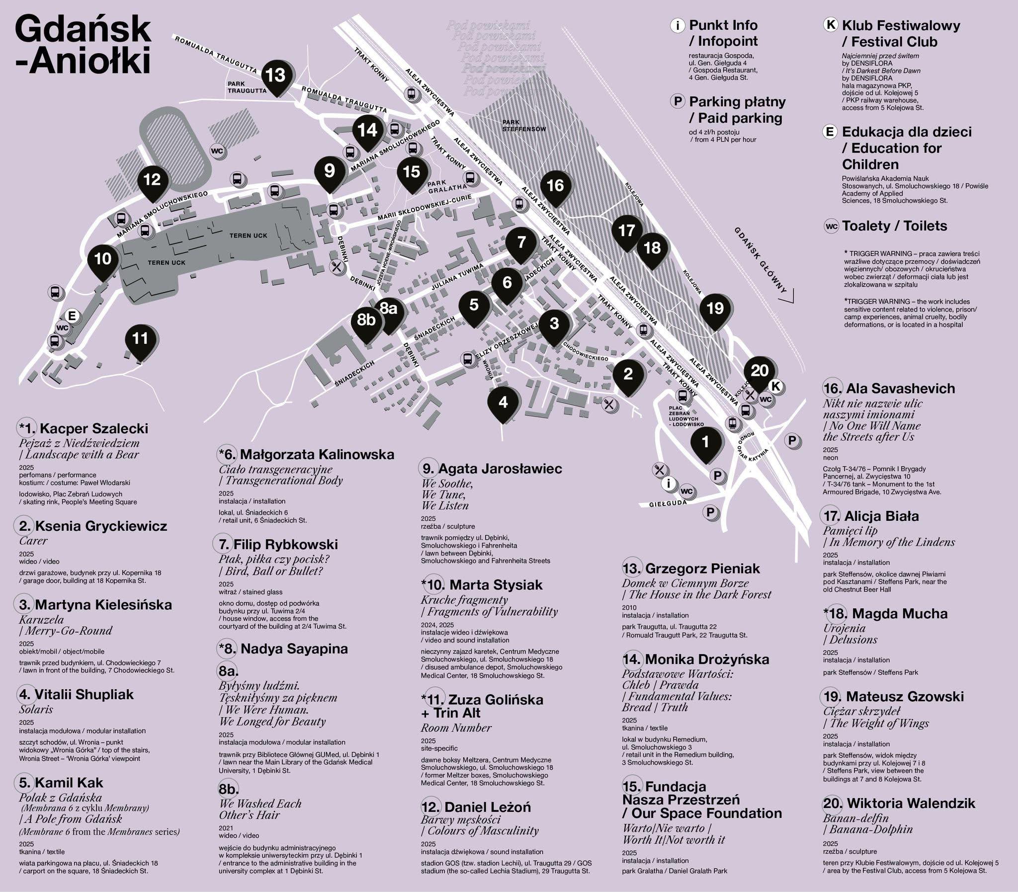 Zależy nam, by festiwal stawał się coraz bardziej dostępny – jest to szczególnie ważne dla założeń tegorocznej edycji wydarzenia. Planujemy organizację spaceru z tłumaczeniem na Polski Język Migowy, a dla osób posiadających problemy w poruszaniu się przygotujemy oprowadzanie dostosowane do ich możliwości.