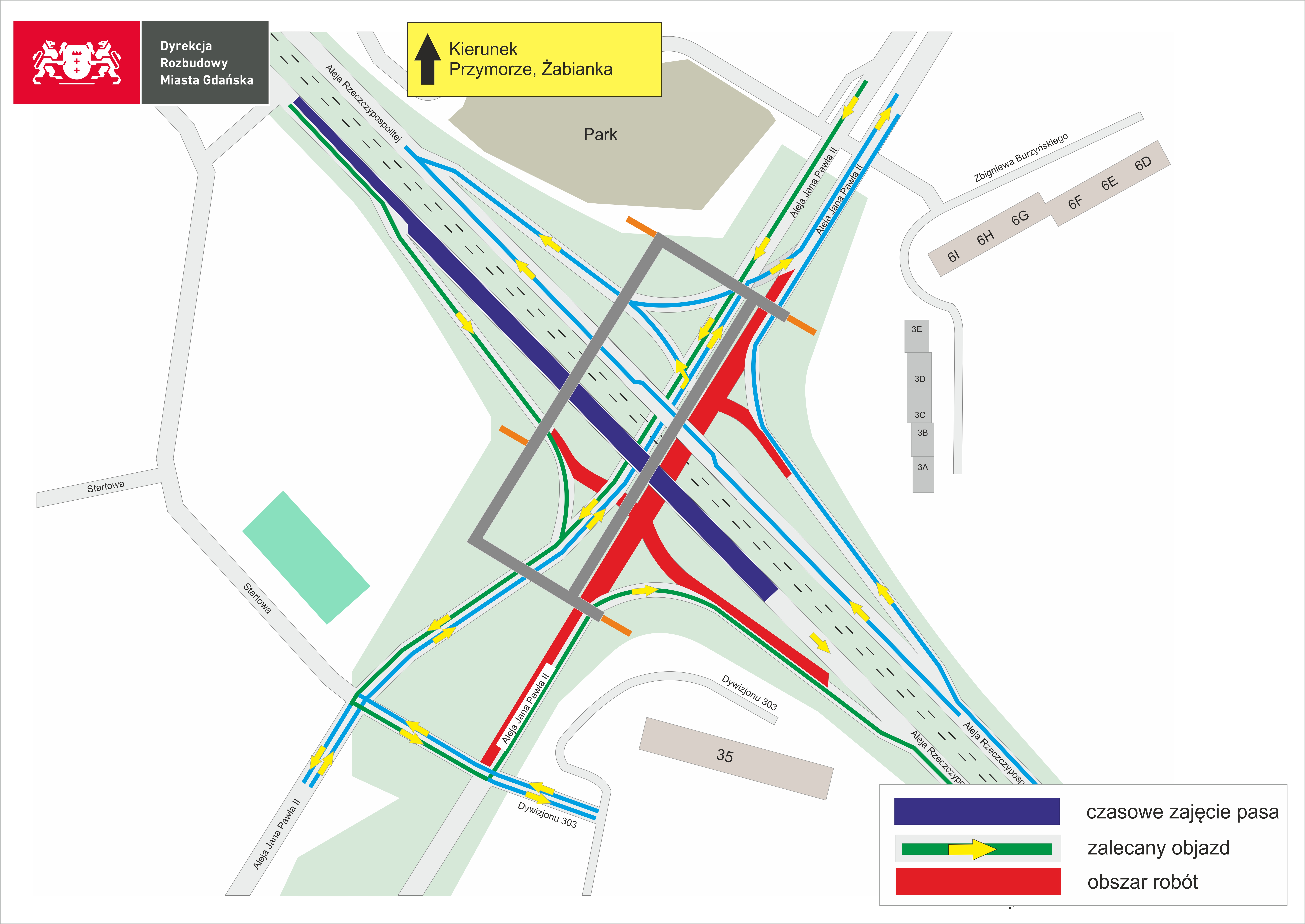 Prace rozbiórkowe będą prowadzone w godzinach nocnych. W związku z robotami rozbiórkowymi, od godziny 22.00 do godziny 5.00 rano zamknięty zostanie fragment jezdni al. Rzeczypospolitej w kierunku Wrzeszcza. Zamknięte zostaną wszystkie pasy ruchu. W tym czasie zalecany jest objazd z wykorzystaniem al. Jana Pawła II i ul. Dywizjonu 303. Te prace mają potrwać do końca tygodnia. Co istotne, w ciągu dnia na fragmencie na wysokości kładki, planowane jest zawężenie lewego pasa jezdni w kierunku Wrzeszcza.