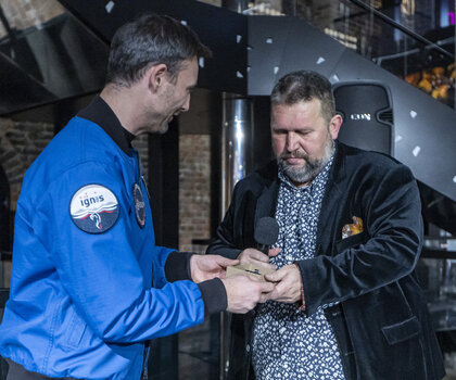 – 320 razy okrążyliśmy naszą Ziemię. To trochę ponad trzynaście milionów kilometrów. Ten okaz, który mi towarzyszył, jest oczywiście znacznie starszy, ale warto było zabrać tę część naszej tradycji i kultury na orbitę. To element naszej wspólnej polskiej historii – mówił dr Sławosz Uznański-Wiśniewski. – Mam nadzieję, że będę mógł tu wrócić i zapoznać się z wynikami badań, które zostaną przeprowadzone przez zespół Muzeum Bursztynu.