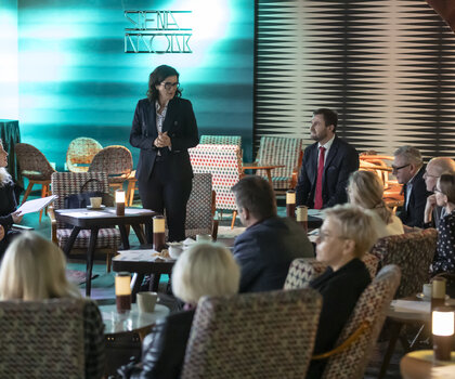 Następnie przedstawiono założenia oraz dotychczasowe efekty programu „Gdańsk Miastem Równości w Biznesie”. Prezentację poprowadziła Katarzyna Ziemann, dyrektorka Wydziału Rozwoju Społecznego UMG. Program, realizowany we współpracy z Fundacją Inicjowania Rozwoju „UP Foundation”, obejmuje m.in. szkolenia dla firm z sektora MŚP, działania na rzecz równego traktowania w biznesie, tworzenie narzędzi wspierających polityki antydyskryminacyjne oraz budowanie sieci współpracy pomiędzy przedsiębiorstwami różnej wielkości. Uczestnicy zapoznali się także z rekomendacjami dotyczącymi kontynuacji programu, m.in. rozszerzeniem działań na kolejne branże, włączeniem instytucji miejskich oraz wzmocnieniem wsparcia dla firm wdrażających rozwiązania zwiększające równość i dostępność usług.