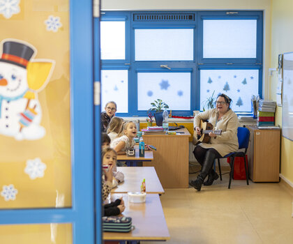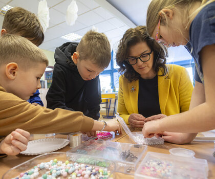 W piątkowy poranek dzieci ze Szkoły Podstawowej nr 78 odwiedzi Monika Chabior, zastępczyni prezydent Gdańska ds. rozwoju społecznego i równego traktowania. Tego dnia zaplanowano zajęcia plastyczne we wszystkich czterech grupach zorganizowanych w ramach Akcji Zima 2026.