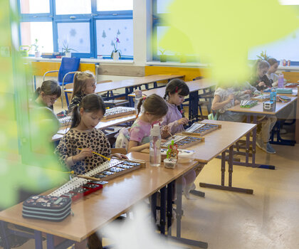 W środowe przedpołudnie w szkole odbywały się zajęcia w ramach trzech grup, a pozostałe trzy wyszły na wycieczkę do kina. Pierwsza z obecnych grup uczestniczyła w zajęciach muzyczno-ruchowych. Uczennice i uczniowie wykonywali przygotowywany przez siebie układy taneczne, a następnie grali na instrumentach. Druga grupa uczestniczyła w zajęciach plastycznych, gdzie wykonywano kartki okolicznościowe z okazji Dnia Babci oraz bransoletki, które z okazji dzisiejszego święta można wręczyć w prezencie. Trzecia grupa tworzyła własne gry planszowe i grała w kilka z nich.