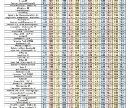 Trasa: Gdynia Dworzec Główny – Skwer Kościuszki Infobox – Wzgórze Św. Maksymiliana SKM – Orłowo SKM – Sopot Reja.