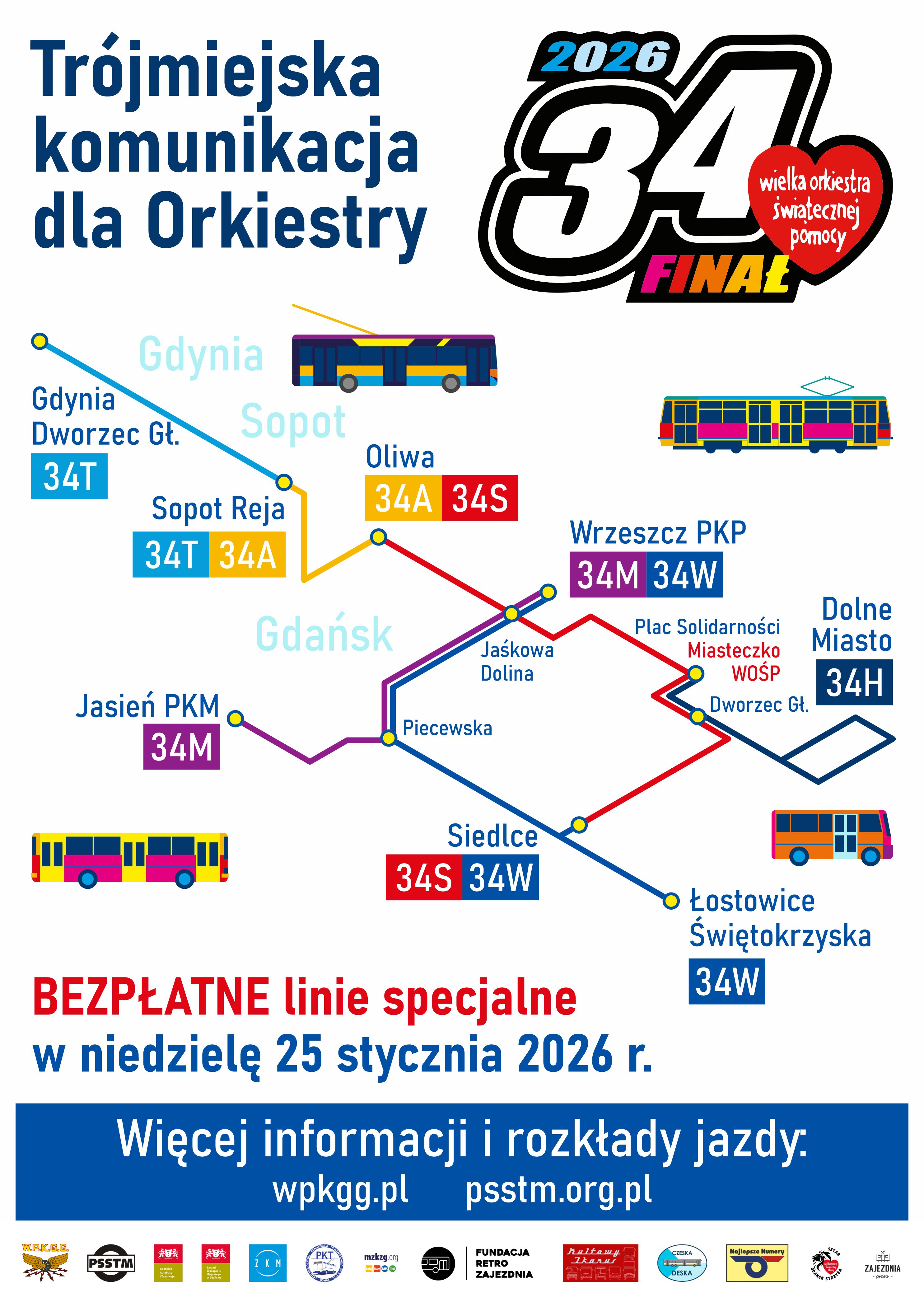 W niedzielę, 25 stycznia, Zarząd Transportu Miejskiego w Gdańsku oraz Gdańskie Autobusy i Tramwaje, wspólnie ze Stowarzyszeniem Grupa Tramwajowo‑Autobusowa WPK GG i Pomorskim Stowarzyszeniem Sympatyków Transportu Miejskiego, uruchomią dwie oficjalne linie specjalne obsługiwane zabytkowym taborem. Kolejne cztery linie przygotowują tego dnia oba stowarzyszenia wraz z kolekcjonerami pojazdów. Wszystkie będą kursować co 40 minut.