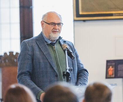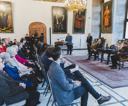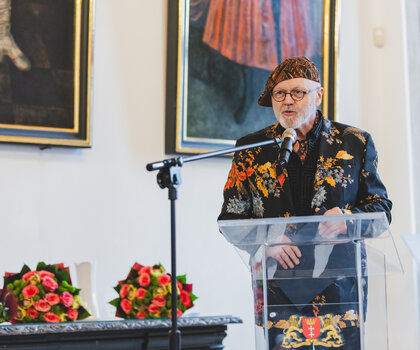 Laudację wygłosił prof. dr hab. Jerzy Błażejowski, przewodniczący kapituły w kategorii nauk humanistycznych i społecznych, prezes Gdańskiego Towarzystwa Naukowego.