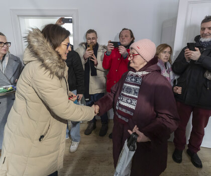 - To duże mieszkania, w których zamieszkają teraz rodziny z dziećmi. Wszystkie mieszkania mają powyżej 50 metrów kwadratowych, w tym cztery mają prawie 60 metrów – podkreśla Aleksandra Dulkiewicz, prezydent Gdańska. – Cieszę się bardzo, że zwiększamy co roku liczbę mieszkań dostępnych w różnych programach komunalnych. W 2025 roku wyremontowaliśmy w różnych dzielnicach naszego miasta 174 mieszkania. To tylko część puli mieszkań, które budujemy od zera poprzez nasze spółki Towarzystwa Budownictwa Społecznego czy Gdańską Infrastrukturę Społeczną czy także mieszkania pozyskiwane na rynku wtórnym. Życzę wszystkim rodzinom, które tu zamieszkają, abyście tutaj, w tym chyba najpiękniejszym budynku w Nowym Porcie, stworzyli dobry dom, mieli dobre relacje sąsiedzkie i budowali małą, lokalną wspólnotę ludzi, którzy tutaj współtworzą dobrze współpracujące całe miasto Gdańsk.