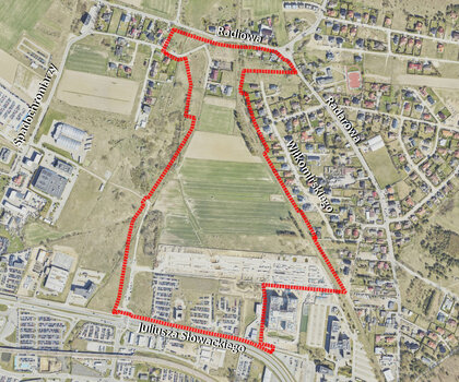 - wprowadzenie terenów zieleni publicznej wzdłuż ulicy Radiowej i projektowanego ciągu pieszo-rowerowego, co pozwoli stworzyć spójną sieć wraz z układem drogowym