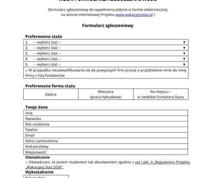 Wakacyjny Staż 2026 - nabór fundatorów staży