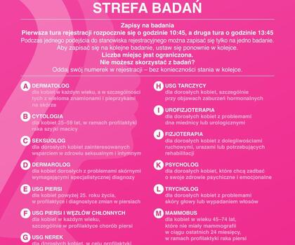 Udział w wydarzeniu jest bezpłatny. Szczegółowy harmonogram badań, konsultacji i prelekcji dostępny w załączniku.