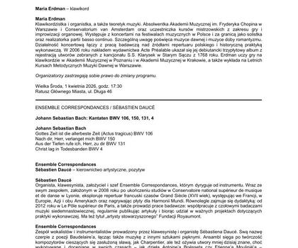 - 1 kwietnia, 20.00, Ensemble Correspondances / Sébastien Daucé, Johann Sebastian Bach – Kantaten BWV 106, 150, 131, 4, Centrum św. Jana