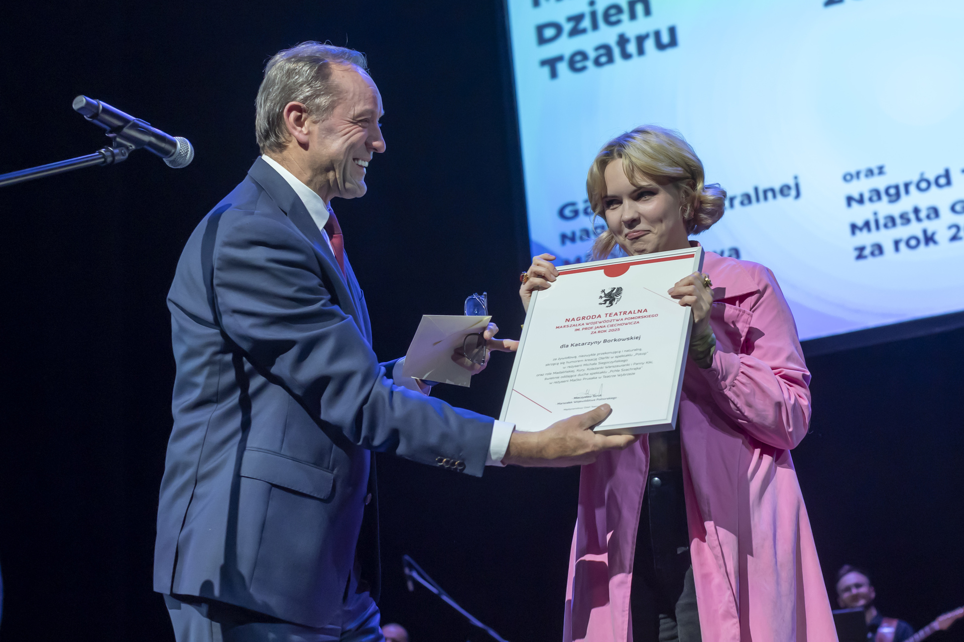 Do grona laureatów dołączyła Katarzyna Borkowska za żywiołową, niezwykle przekonującą i naturalną, skrzącą się humorem kreację Oleńki w spektaklu „Potop” w reżyserii Michała Siegoczyńskiego oraz role Madalińskiej, Kury, Koleżanki Warszawianki i Panny Kiki, świetnie oddające ducha spektaklu „Pchła Szachrajka” w reżyserii Maćko Prusaka w Teatrze Wybrzeże.