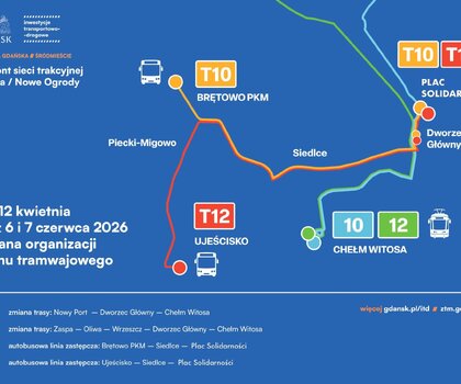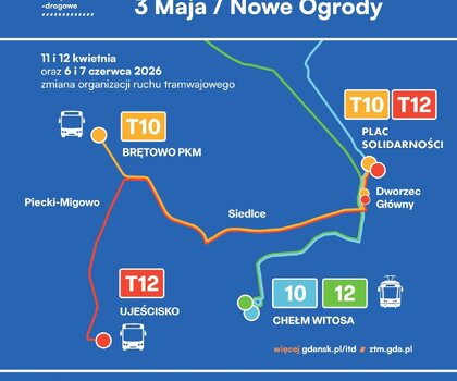 W związku z tym linie 10 i 12 będą funkcjonować na zmienionych trasach. Uruchomione zostaną zastępcze linie autobusowe T10 i T12.