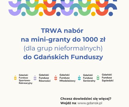 - Gdański Fundusz Sąsiedzki- operator: Fundacja RC / e-mail: gfs@fundacjarc.org.pl / szczegóły: tutaj