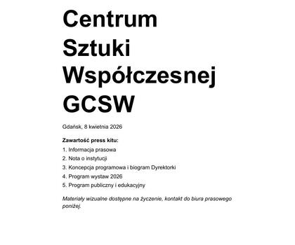 8 kwietnia 2026 zainaugurowano działalność Gdańskiego Centrum Sztuki Współczesnej – nowej instytucji kultury powstałej z połączenia CSW Łaźnia i Gdańskiej Galerii Miejskiej, działającej jednocześnie w pięciu lokalizacjach miasta. Start GCSW wyznacza rozbudowany program wystaw, projektów edukacyjnych, społecznych i partnerstw, w tym udział w Pawilonie Polskim na Biennale w Wenecji. Powstanie także BOA – pierwsze w Polsce Biuro Obsługi Artystów, stworzone w odpowiedzi na realne potrzeby gdańskiego środowiska artystycznego. W kwietniu 2026 wstęp do wszystkich oddziałów jest wolny.