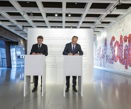 – Cieszę się, że mamy okazję spotkać się w Europejskim Centrum Solidarności. Jako uczestnik tego wielkiego ruchu niejednokrotnie byłem świadkiem, jak w najtrudniejszych chwilach – w czasie stanu wojennego – nasi francuscy przyjaciele nam pomagali. Kiedy działałem w nielegalnym podziemiu „Solidarności”, wiele transportów sprzętu, który wspierał budowę ruchu oporu, pochodziło właśnie z Francji. Zawsze będziemy pamiętać także gościnność wobec naszych rodaków, którzy w Paryżu organizowali pomoc w tamtych trudnych latach – mówił Donald Tusk, premier RP. - Rozmawialiśmy dziś także o przyszłości. To bardzo obiecujące rozmowy – jeśli chodzi o współpracę w energetyce, w szeroko rozumianym bezpieczeństwie, także militarnym, oraz w obszarze kosmosu. Mamy podobny pogląd na sytuację geopolityczną, podzielamy te same obawy dotyczące niestabilności geostrategicznej i tak samo odczytujemy potrzebę wzmocnienia suwerenności Europy oraz naszych państw. Chcemy konsekwentnie wspierać wszystkich, którzy stawiają opór agresji, dbając jednocześnie o relacje transatlantyckie. Mamy tę samą determinację, by utrzymać nasze relacje na wysokim poziomie. Wiemy, że Europa w tych trudnych czasach szczególnie potrzebuje jedności.