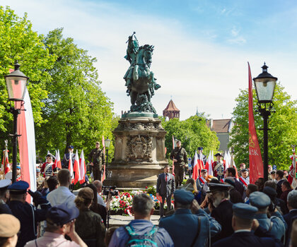 - 14.00 / pomnik marszałka Józefa Piłsudskiego / al. Grunwaldzka / uroczystość patriotyczna