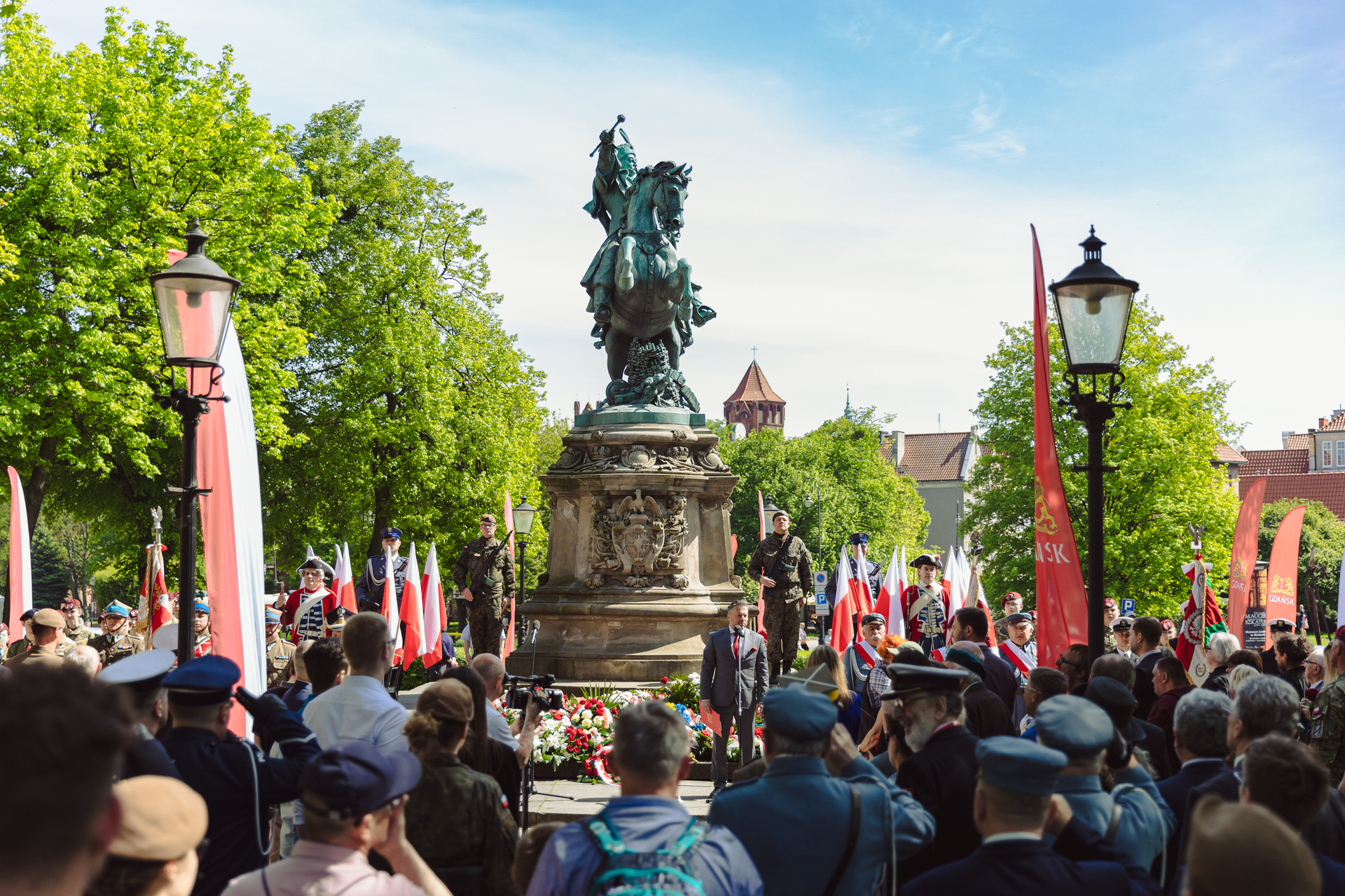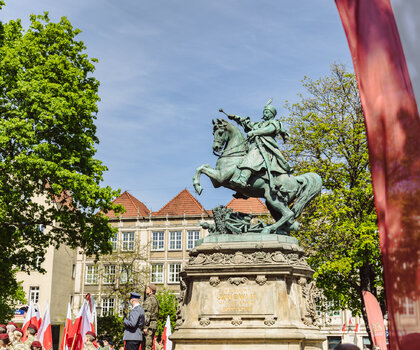 - 11.00 / pomnik króla Jana III Sobieskiego / uroczystość patriotyczna; będzie można otrzymać flagi UE, RP i Gdańska,