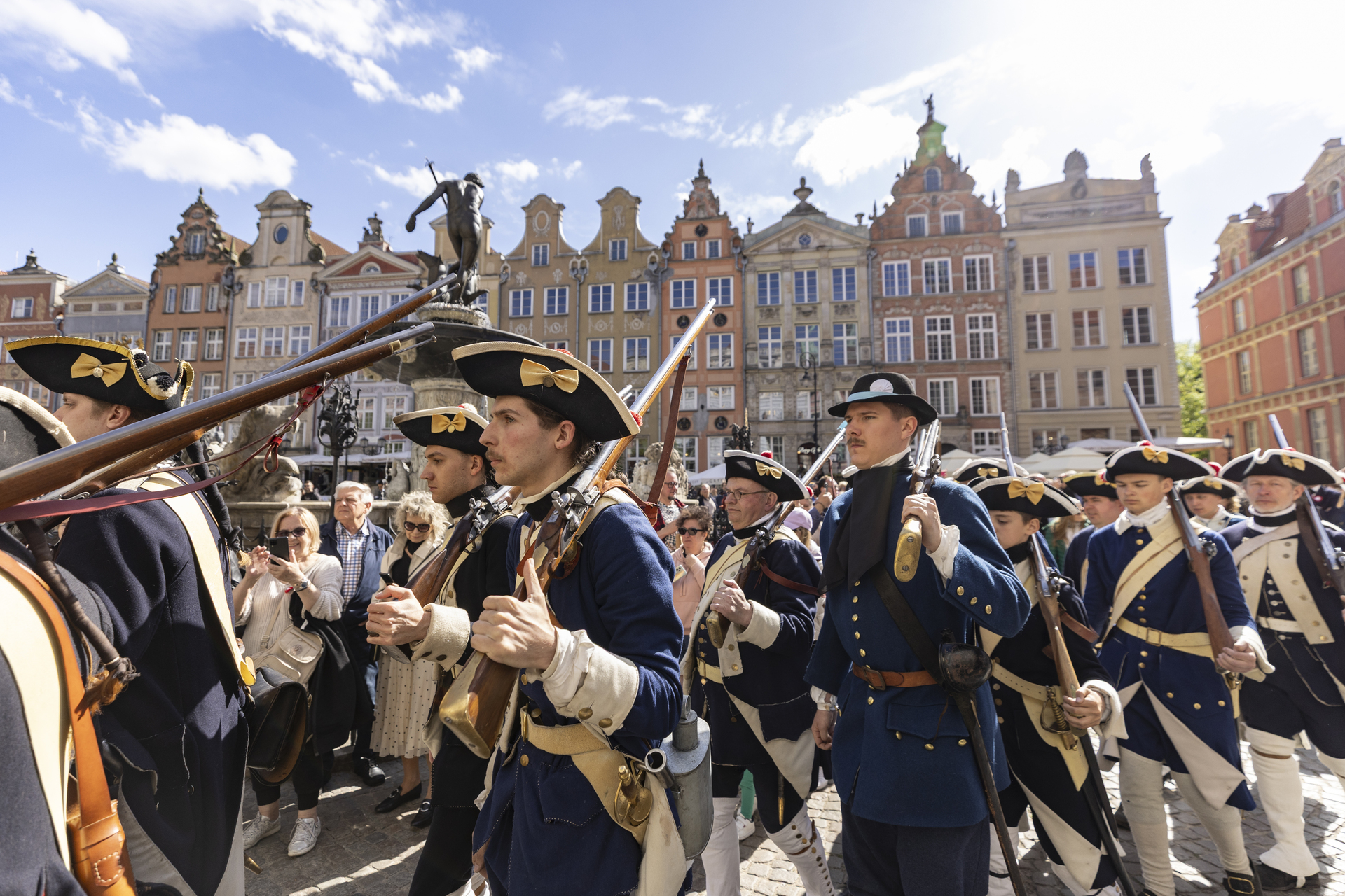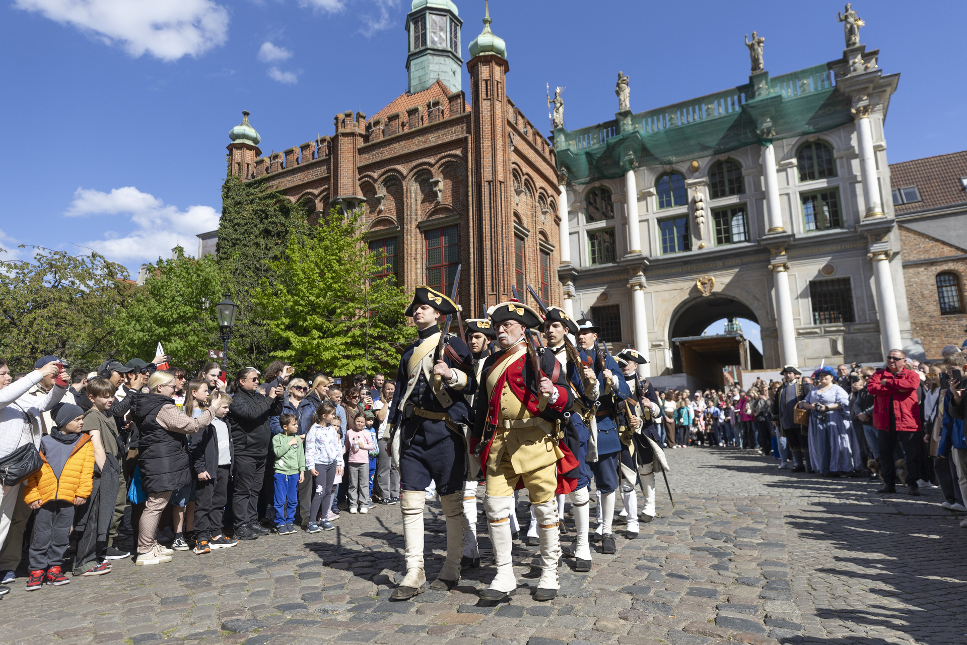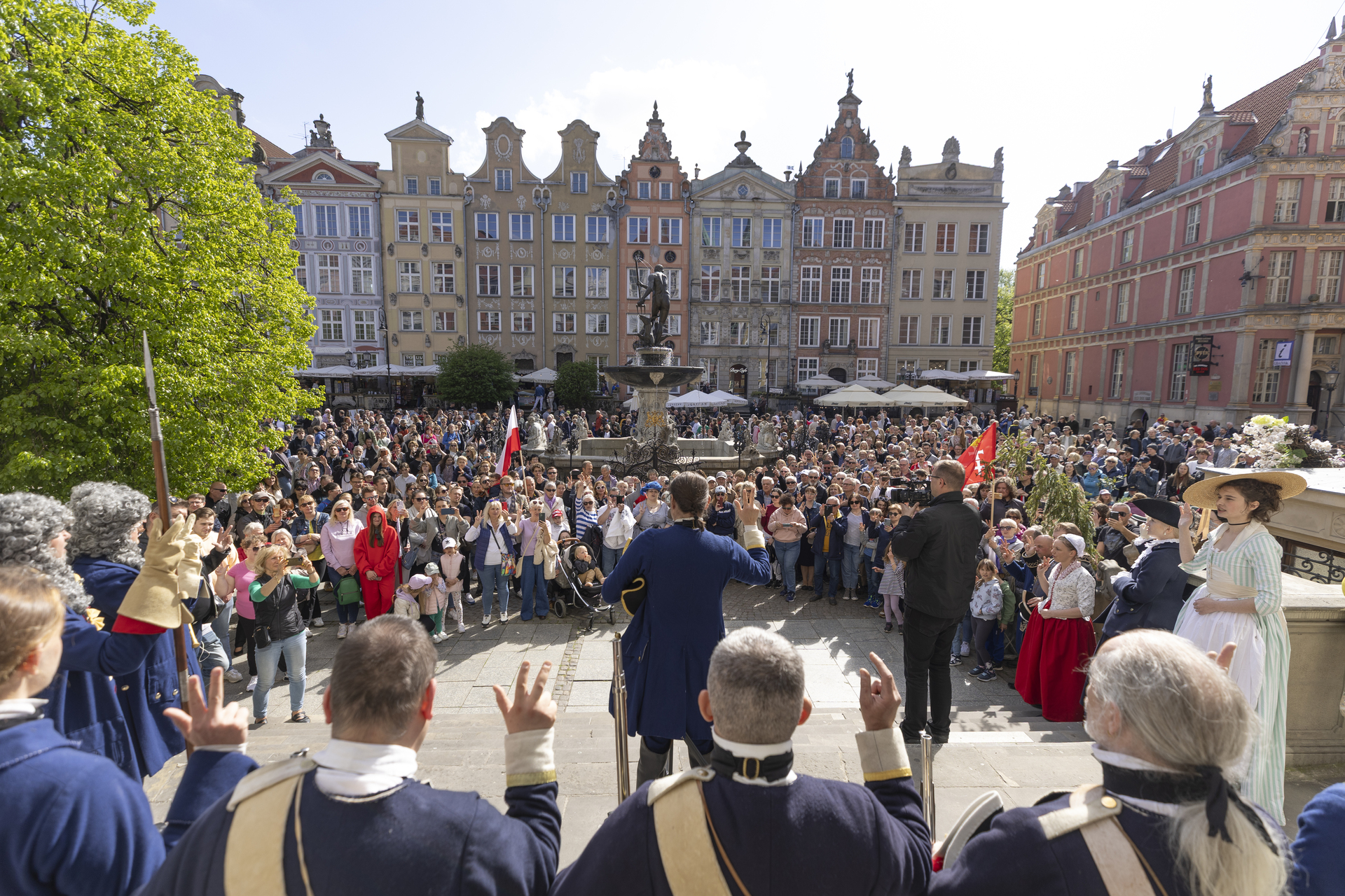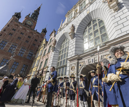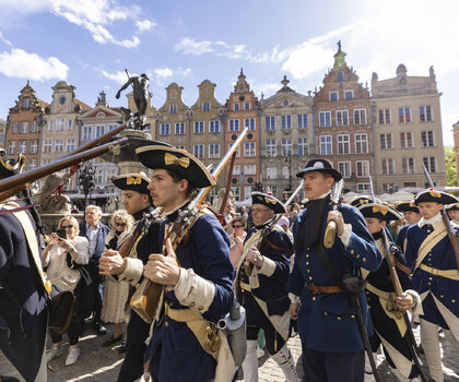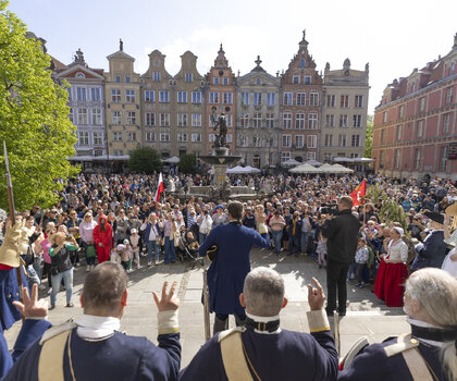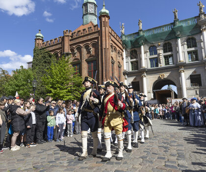 3 maja przestrzeń Głównego Miasta wypełni się żywą historią. O godz. 15.00 pomiędzy Wieżą Więzienną a Złotą Bramą odbędzie się uroczysta historyczna zmiana warty w wykonaniu Stowarzyszenia Garnizon Gdańsk. Następnie rekonstruktorzy przejdą ulicą Długą pod Dwór Artusa, gdzie o godz. 15.30 zaplanowano inscenizację przysięgi mieszczan gdańskich na wierność królowi i I Rzeczypospolitej. Widowisko oparte jest na oryginalnym tekście z XVII wieku – dawnym warunku uzyskania pełnych praw obywatelskich w mieście.