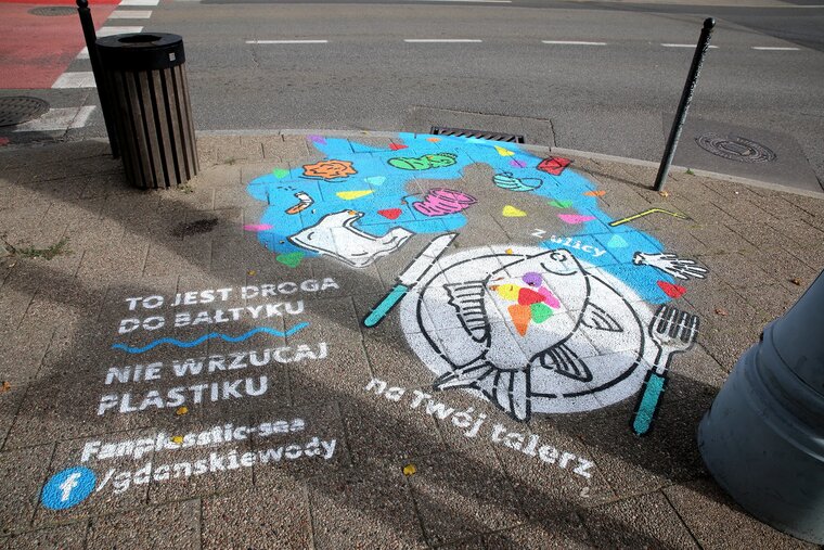 Znakowanie wpustu deszczowego przy ul Nowe Ogrody. Materiały prasowe Gdańskie Wody