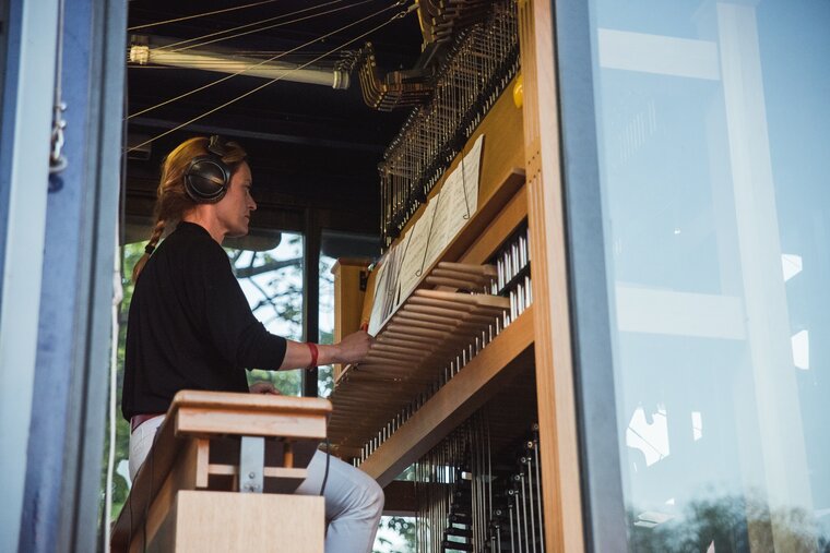 Monika Kaźmierczak podczas koncertu w kabinie carillonu mobilnego "Gdańsk".