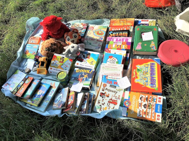 Książki, zabawki na tegorocznym pchlim targu w Gdańsku Chełmie