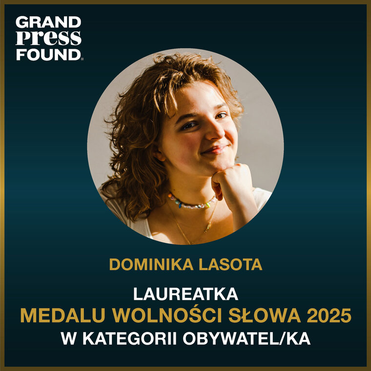 W kategorii OBYWATEL KA Medal Wolności Słowa otrzymuje Dominika Lasota, mat Fundacja Grand Press