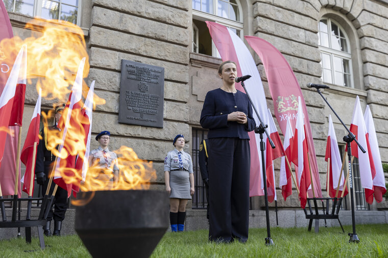 Uroczystość pod tablicą upamiętniającą harcmistrza Jana Ożdżyńskiego, fot Grzegorz Mehring (1)