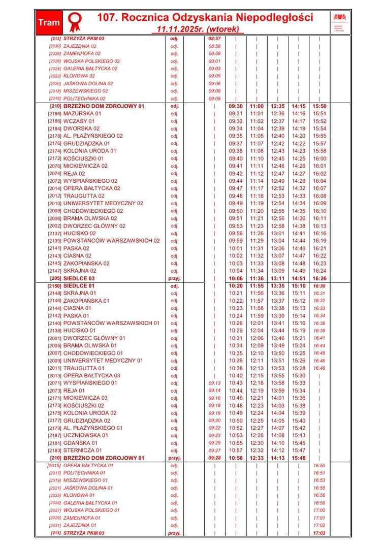 Szczegóły załącznika Tramwaj Niepodległości, rozkład jazdy