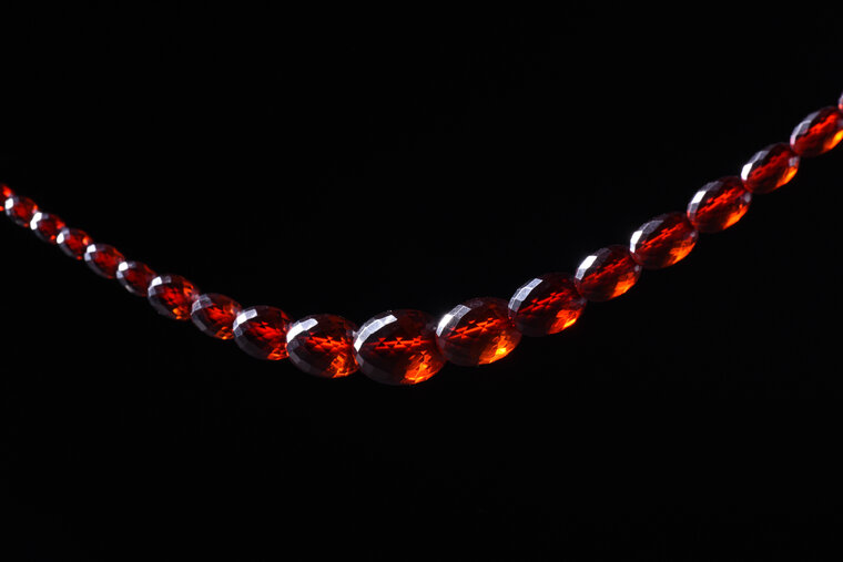 Sznur korali fasetowanych, imitacja bursztynu, pocz XX wieku, mat MG