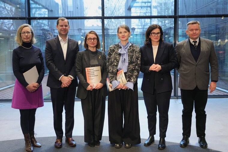 Od lewej stoją: Maria Sasin, dyrektorka Gdańskiej Galerii Miejskiej, Maximilian Kieturakis, Radny Miasta Gdańska, przewodniczący Komisji Kultury w RMG, Barbara Frydrych, dyrektorka Biura Prezydenta ds. Kultury UMG, Marta Kołacz, dyrektorka Centrum Sztuki Współczesnej Łaźnia,, Aleksandra Dulkiewicz, prezydent Gdańska i Waldemar Ossowski, dyrektor Muzeum Gdańska.