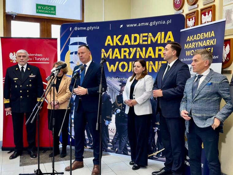 Piotr Borys, wiceminister Sportu podczas konferencji prasowej, mat. Biuro prasowe UMG