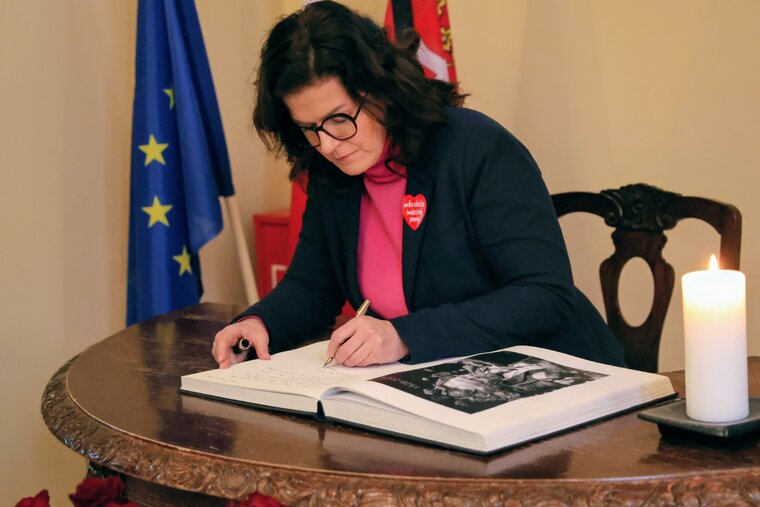 Prezydent Aleksandra Dulkiewicz, wpis do księgi kondolencyjnej, fot Dominik Paszliński