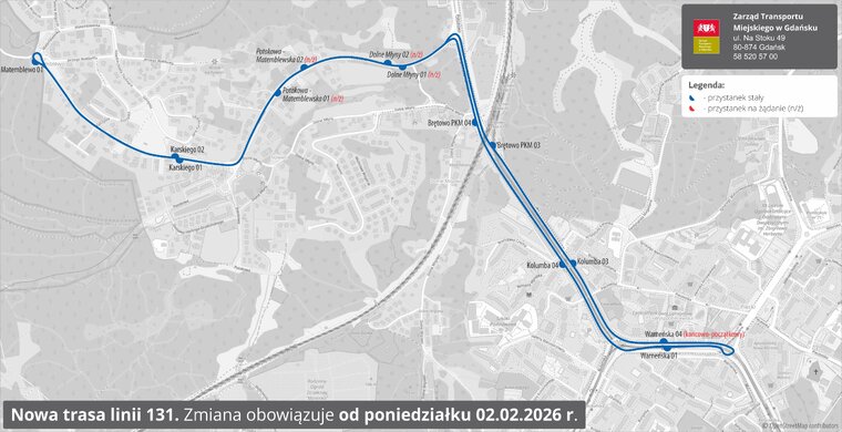Szczegóły załącznika mapka linii 131