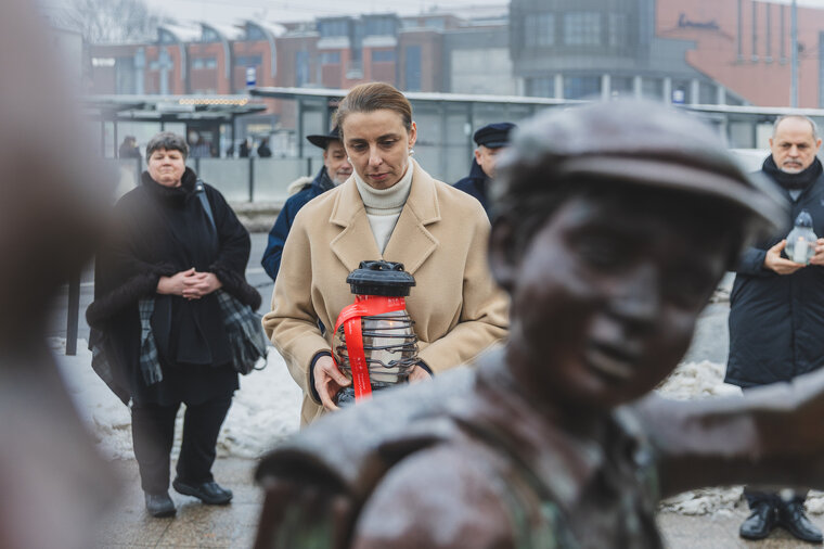 Prezydent Monika Chabior składa znicz przy pomniu, fot Dominik Paszliński (1)